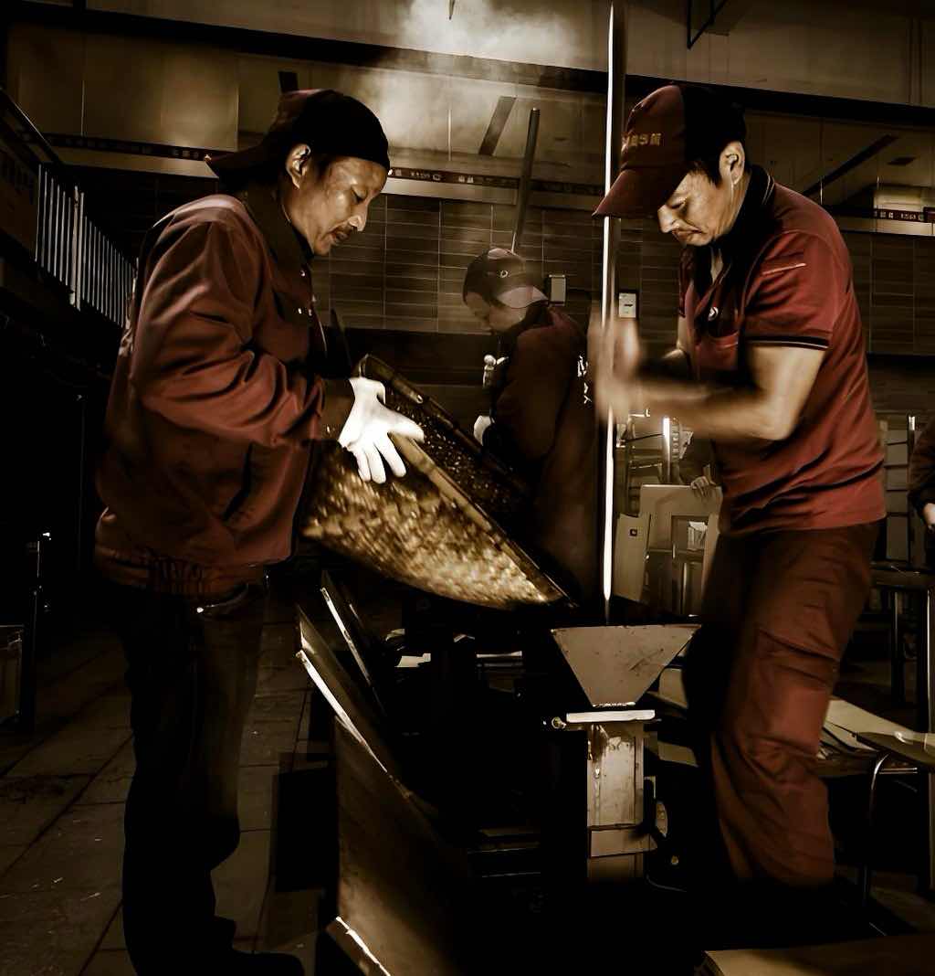 改革开放以来,安化黑茶已经完成了从边销茶到时尚饮品的华丽的转身,图为茶工手工制茶。