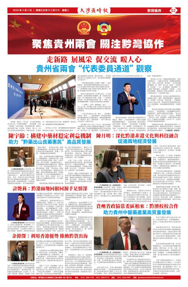 (本報記者張涵坤)貴州省政協常委、香港裕華國貨董事總監余偉傑接受本報記者採訪時說,在當前複雜嚴峻的全球經濟形勢下,貴州錨定建設“內陸開放型經濟新高地”的目標,以“促消費、暢流通、擴開放”為藍圖,特別是從傳統山區向開放前沿轉型的發展路徑,尤為引人注目。《十五五規劃建議》明確提出,支持港澳更好融入和服務國家發展大局。