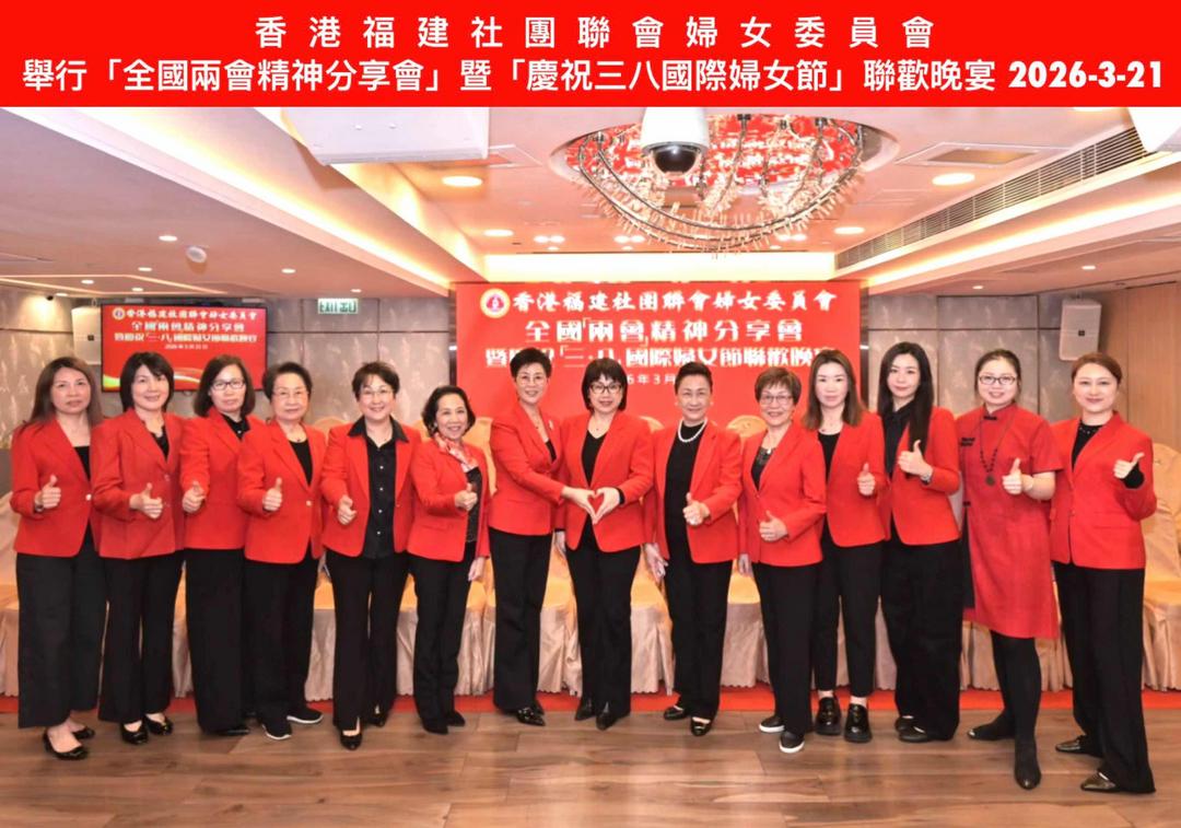 3月21日,香港福建社團聯會舉行全國兩會精神分享會。香港福建社團聯會常務副主席、婦女委員會會長翁雅玲陪同全國政協委員、聯會主席施清流,全國政協常委、聯會榮譽主席吳良好,全國僑聯副主席、聯