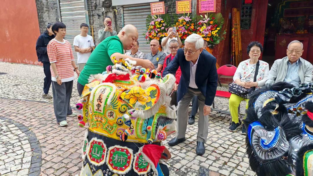 副會長洗志揚、李桂蓮,監事長陳繼添等亦出席,邀請柿山結義堂派出醒獅表演助興,儀式簡單而隆重。陳鍵銓會長稱,澳門媽閣坊衆中和社福德祠土地廟歷史悠久,據考究,始建於清朝,或由官方興建,當年作為海防及民防的組織,為當地百姓提供保護,歷來受人民信奉,香火不断。據説土地公座背牆壁内暗藏本地罕見的“鼎建中和社福德祠碑詰”。鼎建一詞多用於官方或官民合作建造的神壇,金漆刻字能使廟宇脱俗於“來歷不明”的草根氣,是融合民俗宗教和公共管理的活動中心。