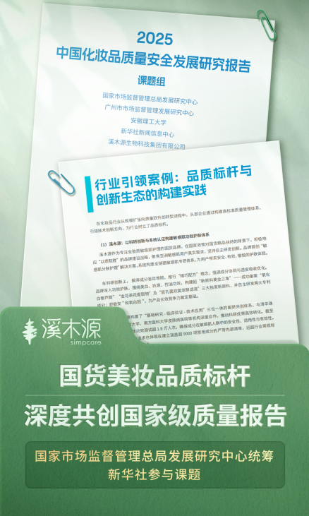 《2025中国化妆品质量安全发展研究报告》的发布,标志着中国化妆品行业正式进入以质量为核心的高质量发展新阶段。溪木源以其在科研创新、质量管控与可持续发展方面的系统实践,展现了国货品牌通过夯实内在竞争力引领行业升级的路径,为构建更高质量的中国化妆品产业生态提供了具象参照。