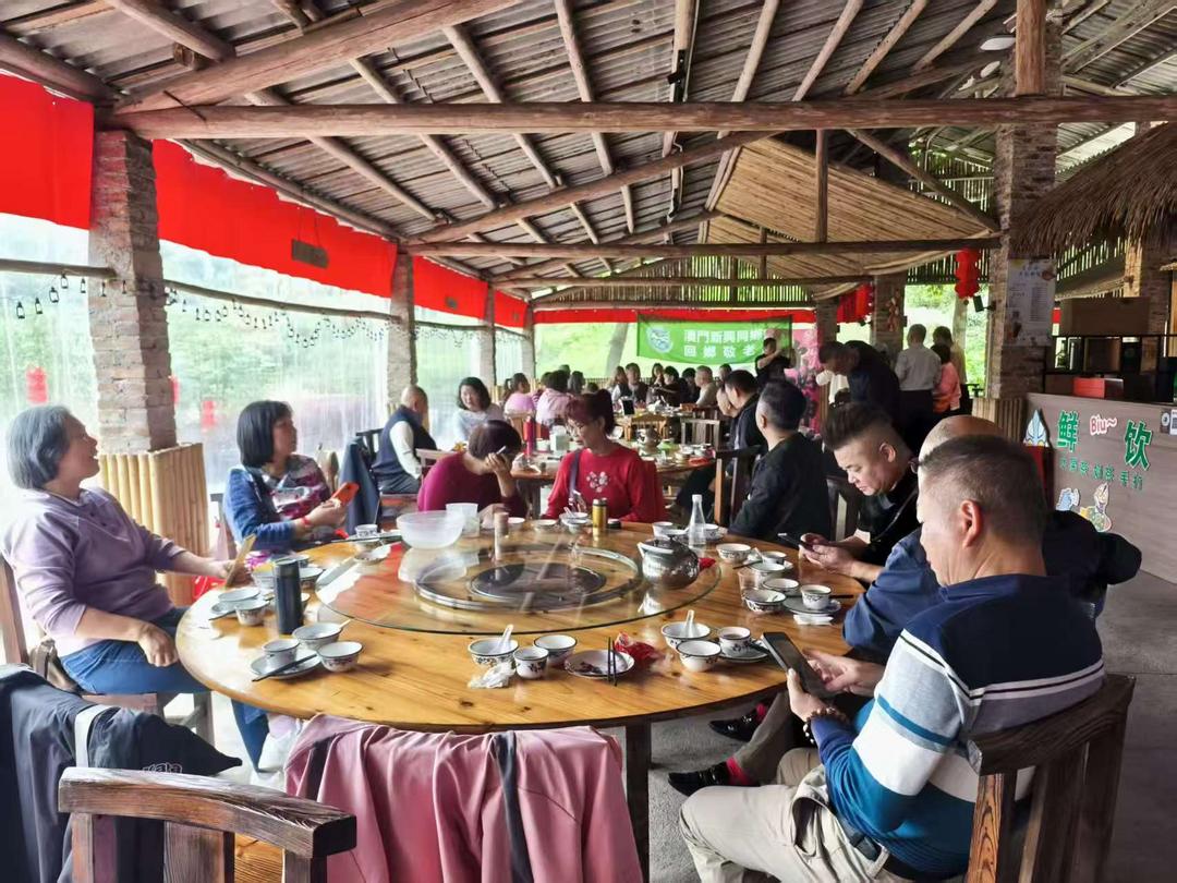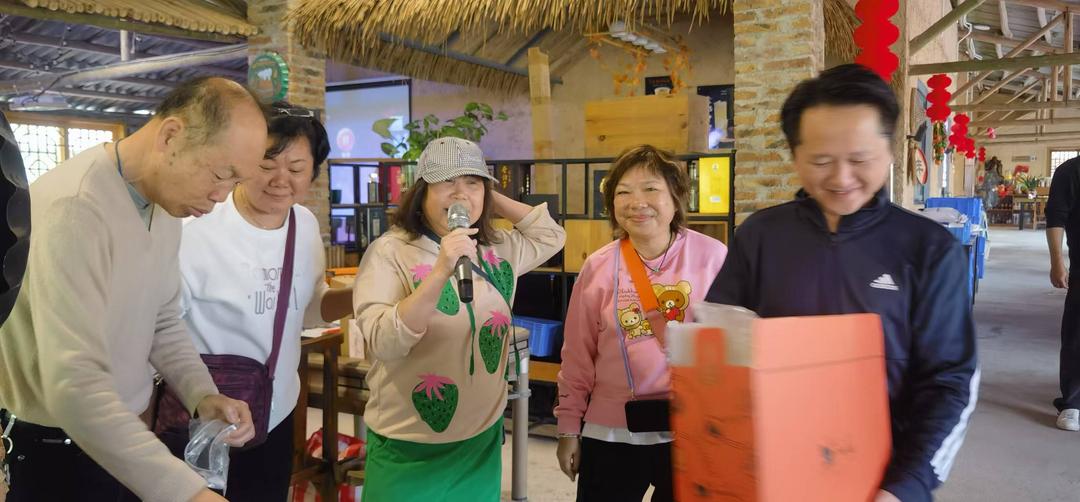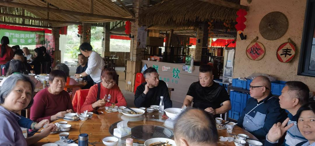 當日中午,結束溫馨的敬老慰問後,敬老團四十餘人於新興自在谷齊聚,舉行三八婦女節慶祝活動,向團隊中的女鄉賢、女家屬致以節日問候與美好祝福,現場歡聲笑語、暖意融融,在桑梓之地共度屬於女性同胞的溫馨時刻,為本次回鄉之行增添濃厚節日氛圍。