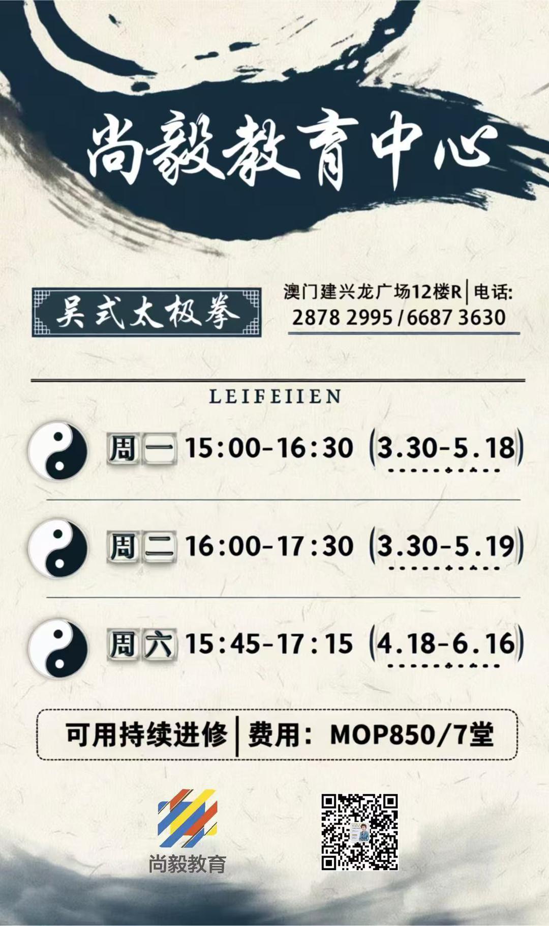 高潔容理事長師傅在致辭中表示,駿華文康武術學會始終堅決響應澳門特區政府社會文化範疇施政方針,緊扣「推動大眾體育發展、深化持續教育、傳承優秀傳統文化」的發展要求,積極將太極拳這一中華傳統武術融入市民日常生活。為落實特區政府「體育資源下沉、健康資源進社區」的工作部署,高師傅已於澳門建興隆廣場12樓R尚毅教育中心開設太極拳持續教育課程,每周一、周二、周六定時授課,以普惠性教學讓更多市民便捷接觸傳統武術,感受太極拳的健身養生價值,助力提升全民健康素養,踐行《健康澳門藍圖》「關口前移、資源下沉、觀念轉變」的三大政策方向。