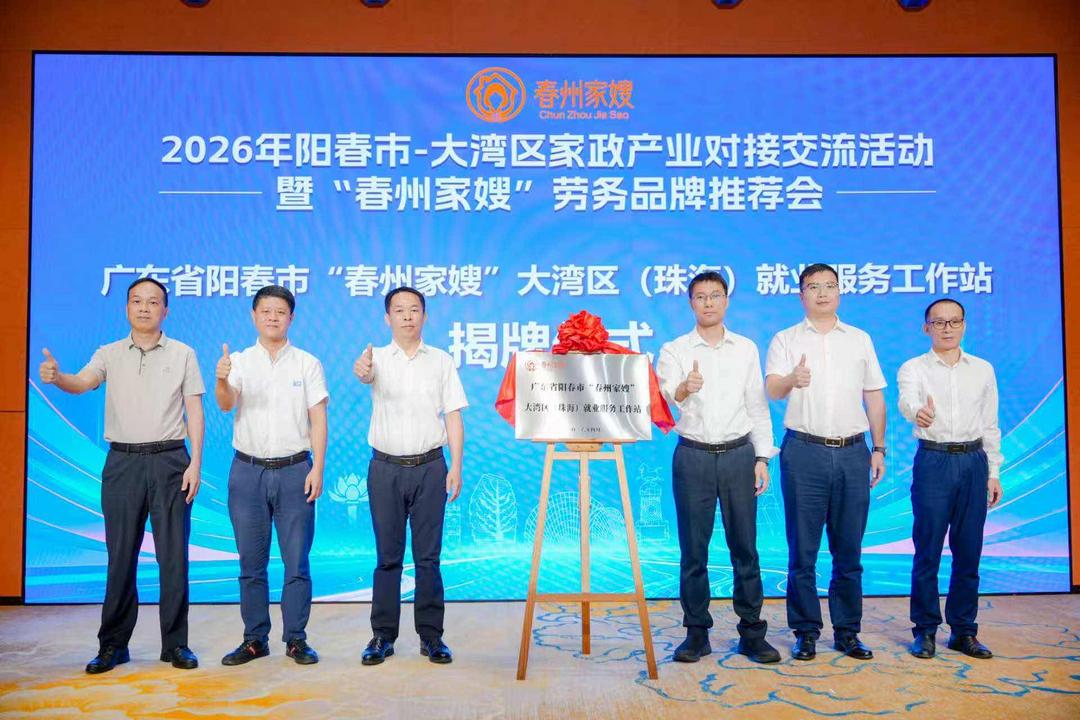 ——“春州家嫂”大湾区(珠海)就业服务工作站揭牌 打造跨区域家政协作新样板(《大湾区时报》记者李翔 珠海讯 )4月29日,2026年阳春市-大湾区家政产业对接交流活动暨“春州家嫂”劳务品牌推荐会在珠海市人力资源服务产业园隆重举行。活动现场,广东省阳春市“春州家嫂”大湾区(珠海)就业服务工作站正式揭牌,为阳春家政人才对接澳门、珠海市场搭建起坚实桥梁,是粤澳家政服务协同发展、共建湾区民生共同体的重要里程碑。