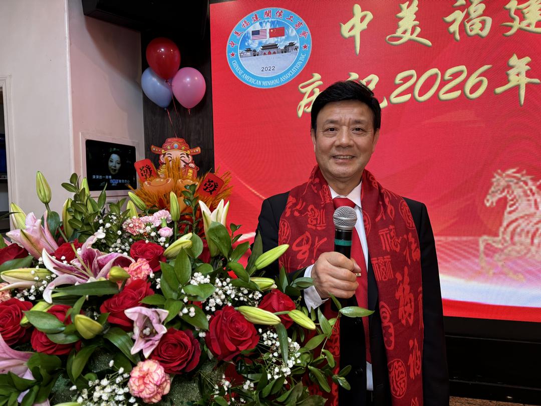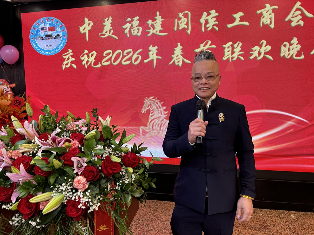 中美福建闽侯工商会主席池洪贵致欢迎词: 岁序更替,华章日新!在中国新年即将到来之际,我非常高兴和大家相约在这里,共同参加中美福建闽侯工商会举行的“喜迎2026马年新春”联欢晚会,在此让我代表中美福建闽侯工商会全体同仁谨向在百忙之中莅临现场与我们同欢共庆的纽约总领馆向裕韬领事和 荣顶领事致以最热烈的欢迎和最崇高的敬意!向大力支持和热情参与今晚活动的各位侨领、各位朋友、各位来宾表示热烈的欢迎和由衷的感谢!