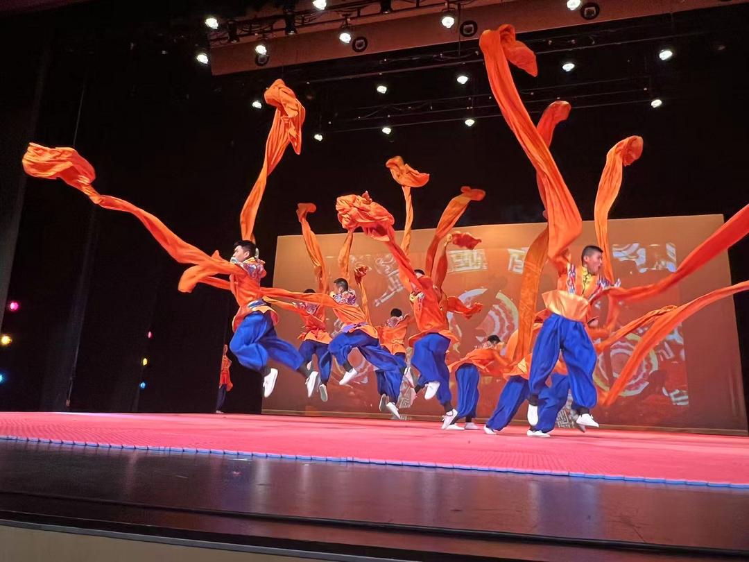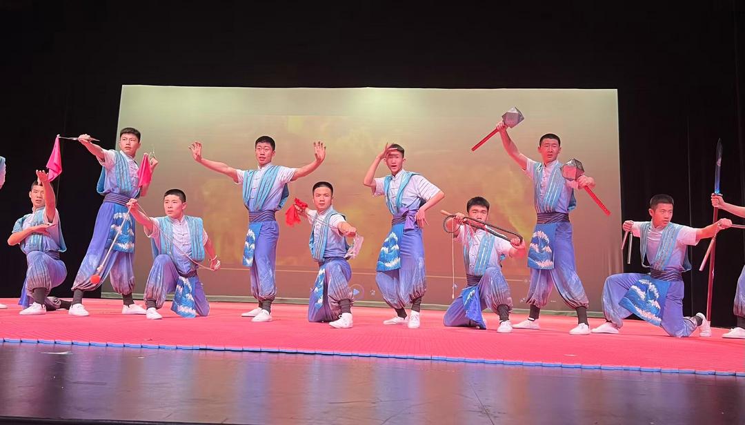 其中,《剑心书韵》曾与成龙合作登上央视春晚舞台, 展现文武合一:毛笔入太极,少年身体90度极限倾斜,尽显功夫与书法交融之美。《少年中国》亦曾与赵文卓同台演出, 诠释“少年强则国强”:武术与《少年中国说》诵读相结合,阳刚之气尽显其中。 《天地人和》中,咏春拳对决“中华柱”绝技:少年们在近两米高柱顶完成前后空翻,干净利落,有惊无险!专业精湛的武术功底与精心编排的舞台设计,赢得现场观众阵阵掌声与喝彩声!