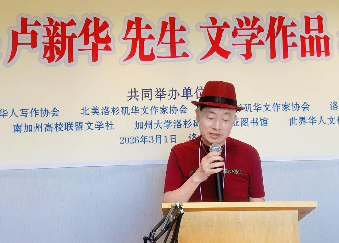 2026年3月1日下午,洛杉矶文学艺术界在位于加州埃尔蒙特市的伟博文化中心举行“著名华人作家卢新华文学作品《无漏》研讨会”。来自南加州多家文学、学术及媒体机构的作家、学者与文化界人士齐聚一堂,共同祝贺卢新华凭借英文版长篇小说《WU LOU》(《无漏》)荣获2025年美国独立出版奖(Foreword INDIES Book of the Year Awards)银奖,并围绕其创作历程与文学价值展开深入讨论。