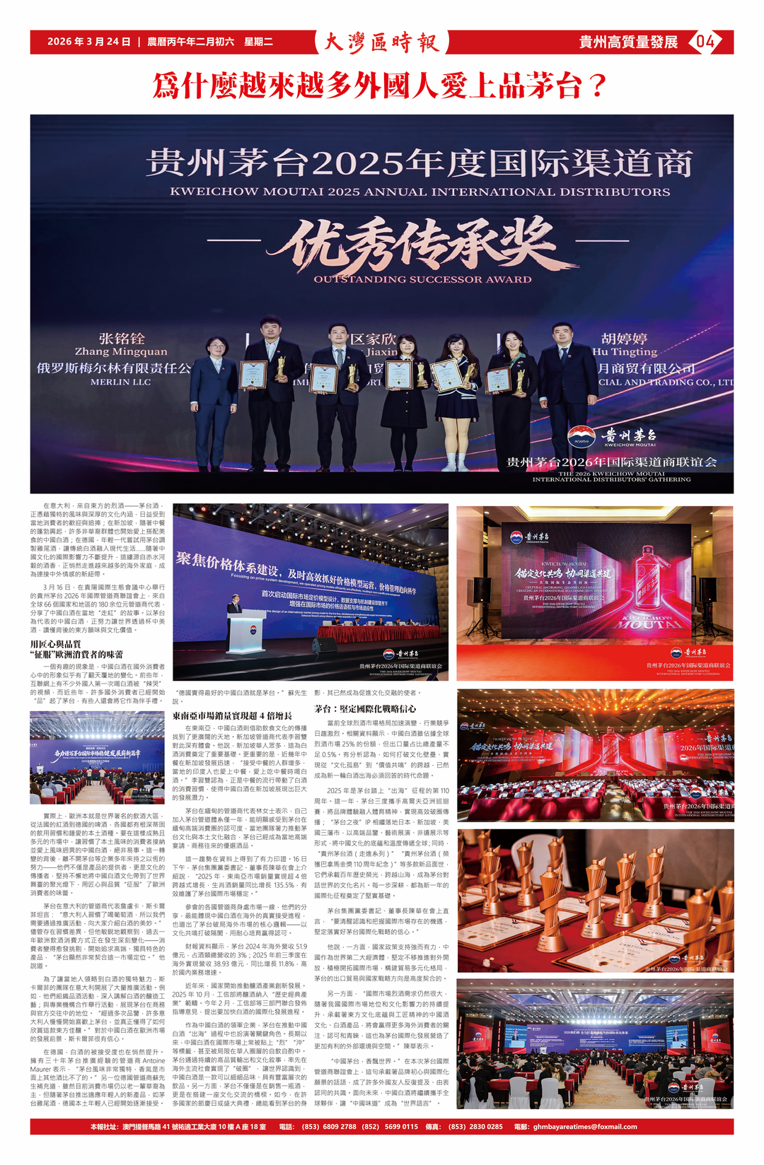 “中国茅台,香飘世界。”在本次茅台国际渠道商联谊会上,这句承载着品牌初心与国际化愿景的话语,成了许多外国友人反复提及、由衷认同的共识。面向未来,中国白酒将继续携手全球伙伴,让“中国味道”成为“世界语言”。
