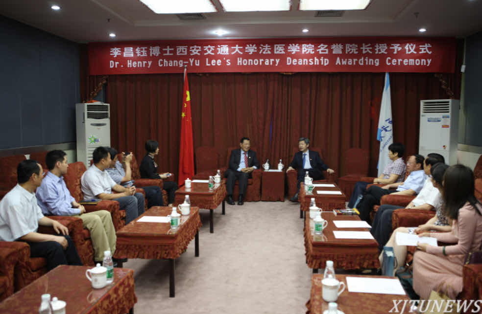 世界著名法科学、证据科学专家李昌钰博士于2014年6月7日访问西安交通大学,继续受聘法医学院名誉院长,并为师生带来精彩的学术讲座。张迈曾书记向李昌钰博士颁发了法医学院名誉院长续聘证书,并为其佩戴校徽。