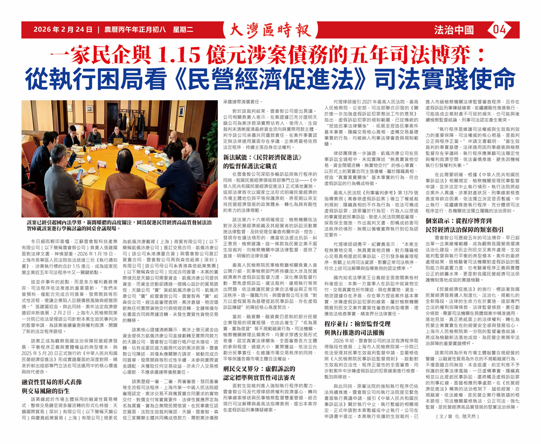 一家民企与1.15亿元涉案债务的五年司法博弈: 从执行困局看《民营经济促进法》的司法实践使命