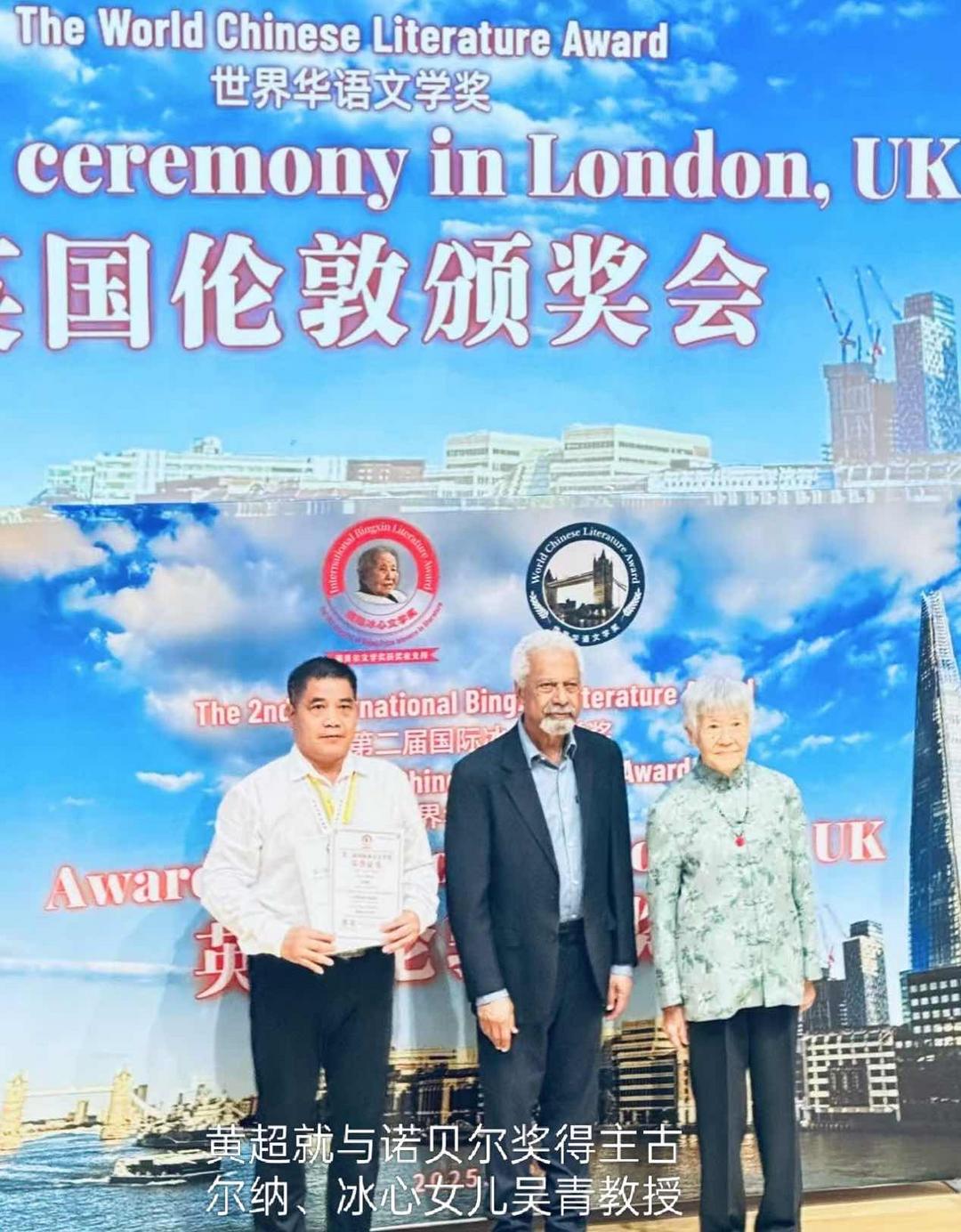 “这份荣誉不仅属于我个人,更属于所有在文学道路上坚守的草根创作者。它像一束光,让每个平凡写作者重新看见坚持的意义,这或许正是冰心先生倡导的‘有了爱便有一切’精神传承。” 黄超就在颁奖现场发表获奖感言时动容地说。典礼上,他还与诺贝尔文学奖得主、英国作家古尔纳亲切交流并合影,两位不同文化背景的创作者就文学与人性的共通性展开了简短而深刻的对话。