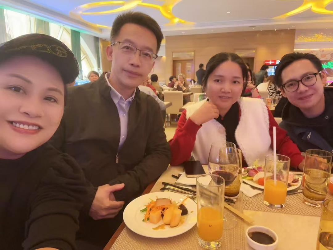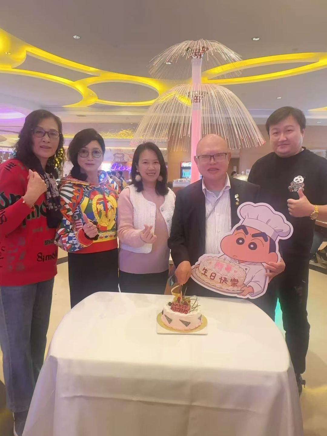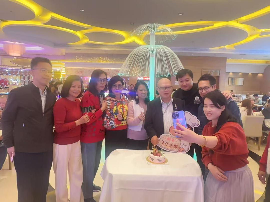 這天,來自各行各業的好友齊聚一堂:有德康牙科醫療中心的黎澳珊,歸橋總會的庾榮安副會長、荘錦春,嬴氏美一人有限公司的梁駿曦、崔夢玲,華仁康養中心的黃樂雪副院長、王道婷、陳念祖,智多星商業服務有限公司的倫永權董事長,以及澳門食品安全管理學會的監事李廣斌。大家放下了身份與忙碌,圍著一張小小的蛋糕桌,笑聲、掌聲、祝福聲匯成一片。這不僅是一場生日聚會,更是一幅生動的「澳門和諧圖」。