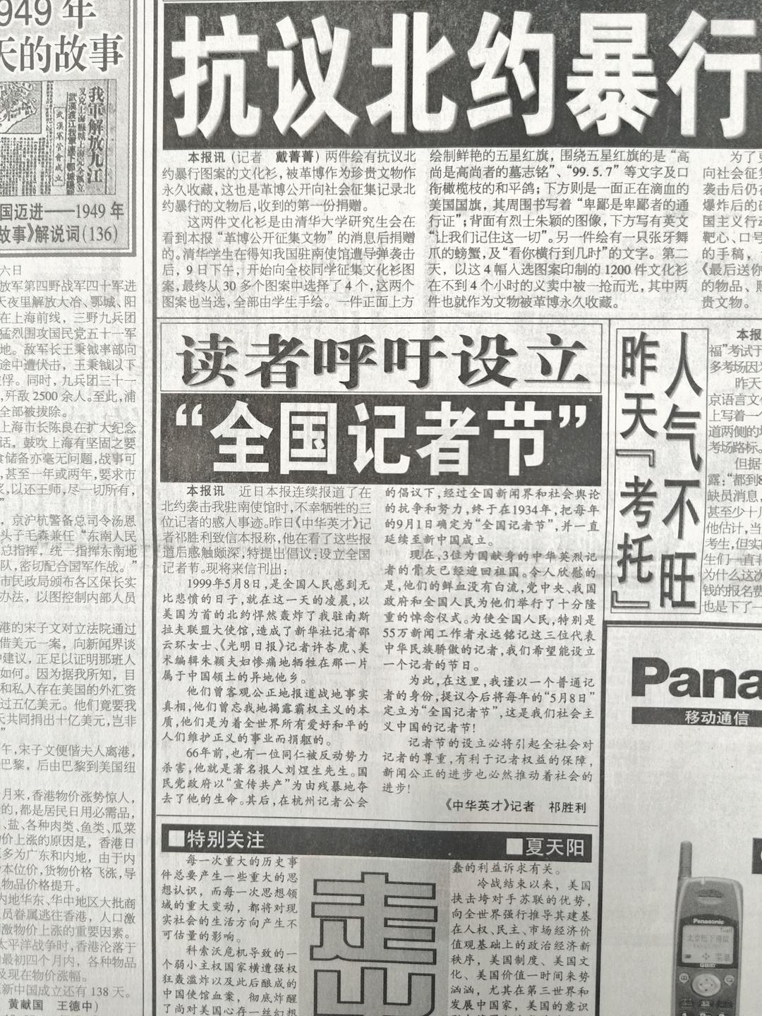 25年前的11月8日,全国新闻工作者有了自己的节日。记者节也是新中国六个职业节(其他五个是教师节、医师节、护士节、警察节、农民丰收节)之一。在这些职业节中,祁胜利博士是唯一可以追溯到的首倡者,也就是新中国记者节首倡者。正是1999年5月13日,彼时刚加入记者队伍的祁胜利奋笔写下倡议书,直接推动了“新中国记者节”的设立!