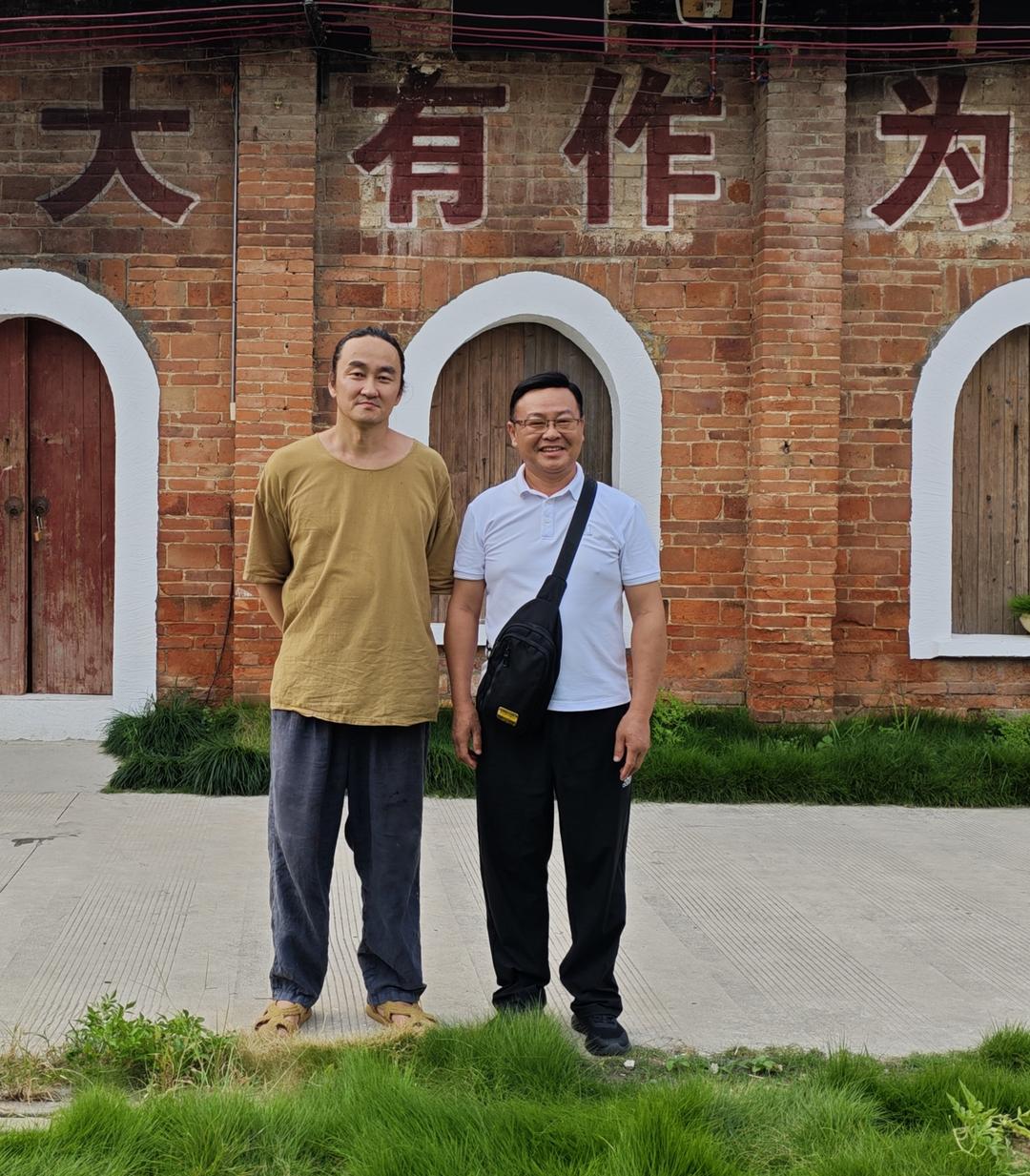 “大有可为”--第一批艺术工匠名师王伯杨与桂林健康科学研究会会长陆昱在“王伯杨工作室”合影留念。