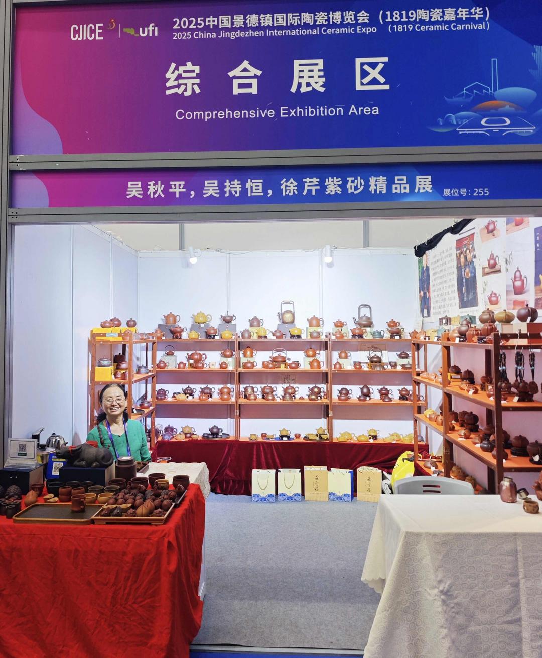 徐芹说,瓷博会这个平台汇集了全国乃至全球的匠人、艺术家、收藏家,我们每年参展都很有收获。景德镇不仅仅是艺术家应该来的陶瓷文化朝圣地,更越来越成为陶瓷艺术发烧友的聚集地、收藏家的聚集地。每年只要我在朋友圈发消息来参加景德镇瓷博会,我们周边的壶友们都会赶来景德镇,大家看看壶,聚聚,在景德镇走走看看。
