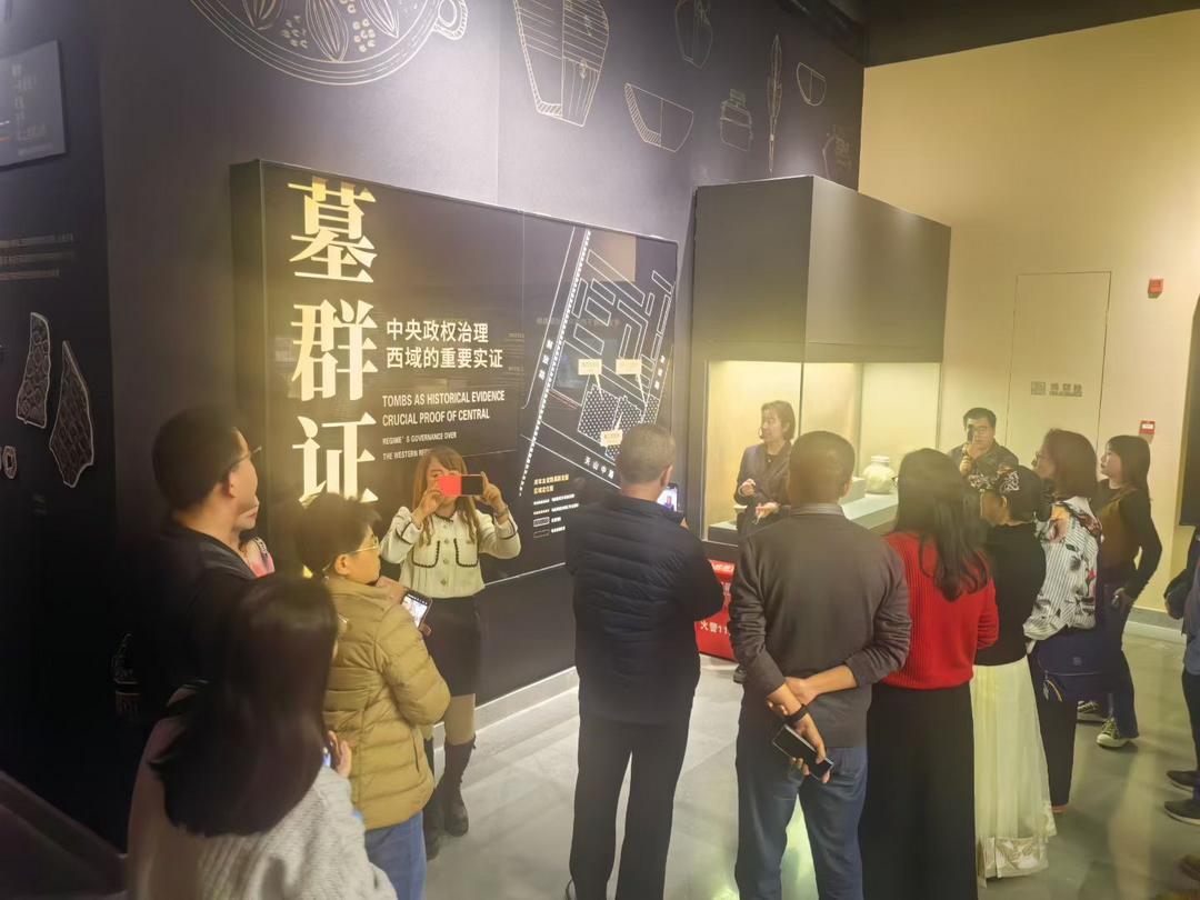 采访团参观了新疆龟兹魏晋遗址博物馆。该博物馆是依托具有重要历史价值的友谊路晋十六国时期地下古墓群遗址建设而成,总建筑面积达9719.99平方米,是一座集文物保护、展示、研究、教育及旅游功能于一体的现代化遗址博物馆。
