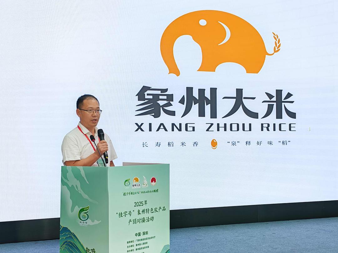 7月3日,2025年“桂字号”象州特色农产品产销对接会在深圳海吉星国际农产品物流园举行。在活动中,象州县人民政府与象州县农业农村局、象州县市场监督管理局共同发布了象州大米品牌形象LOGO和宣传语。