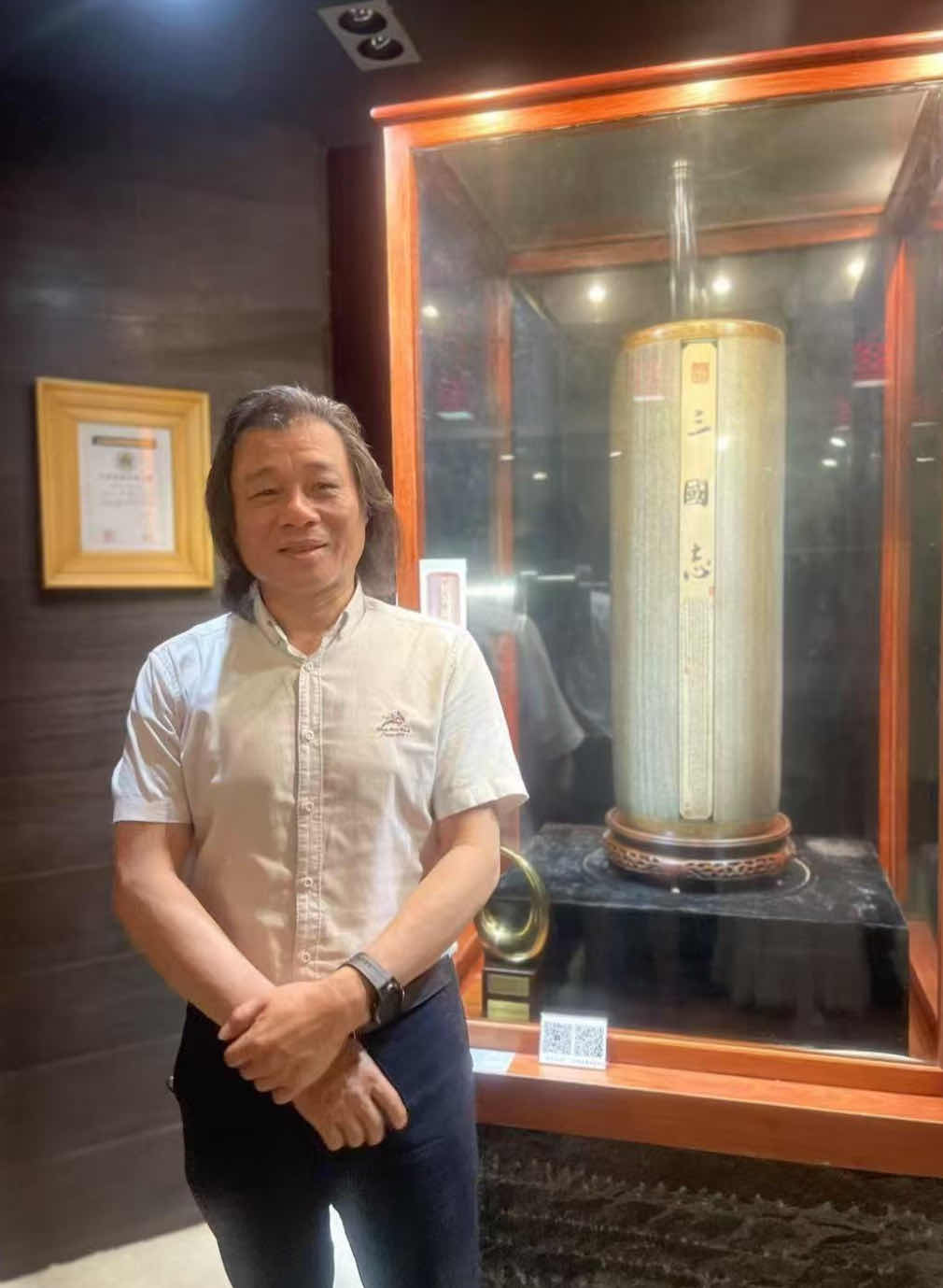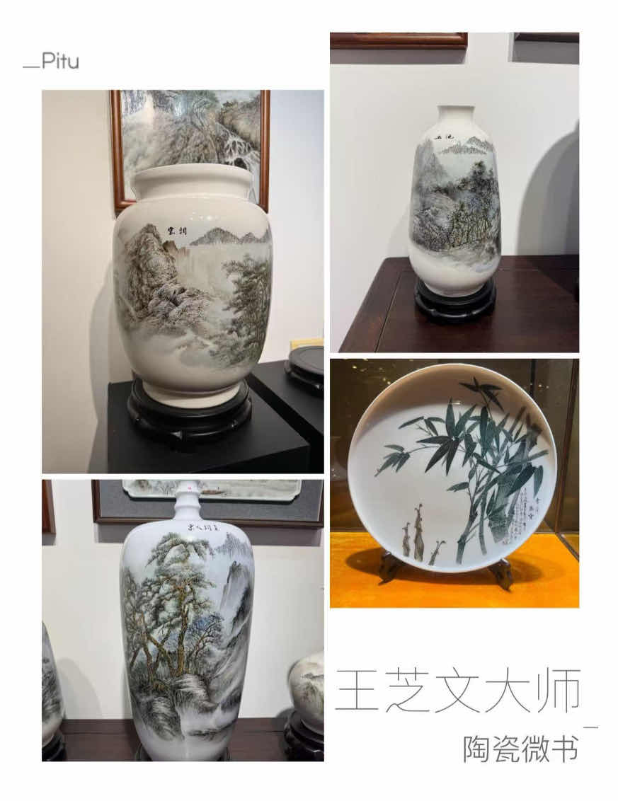 在馆内,大家近距离欣赏了亚太地区手工艺大师、中国工艺美术大师、国家级“非遗”项目陶瓷微书传承人王芝文老师的经典作品, 细腻入微的笔触、 精妙绝伦的技艺让在场者深深感受到传统手工艺的独特魅力与文化底蕴。 参观结束后, 全体人员合影留念, 定格这一传承与交流的珍贵时刻。