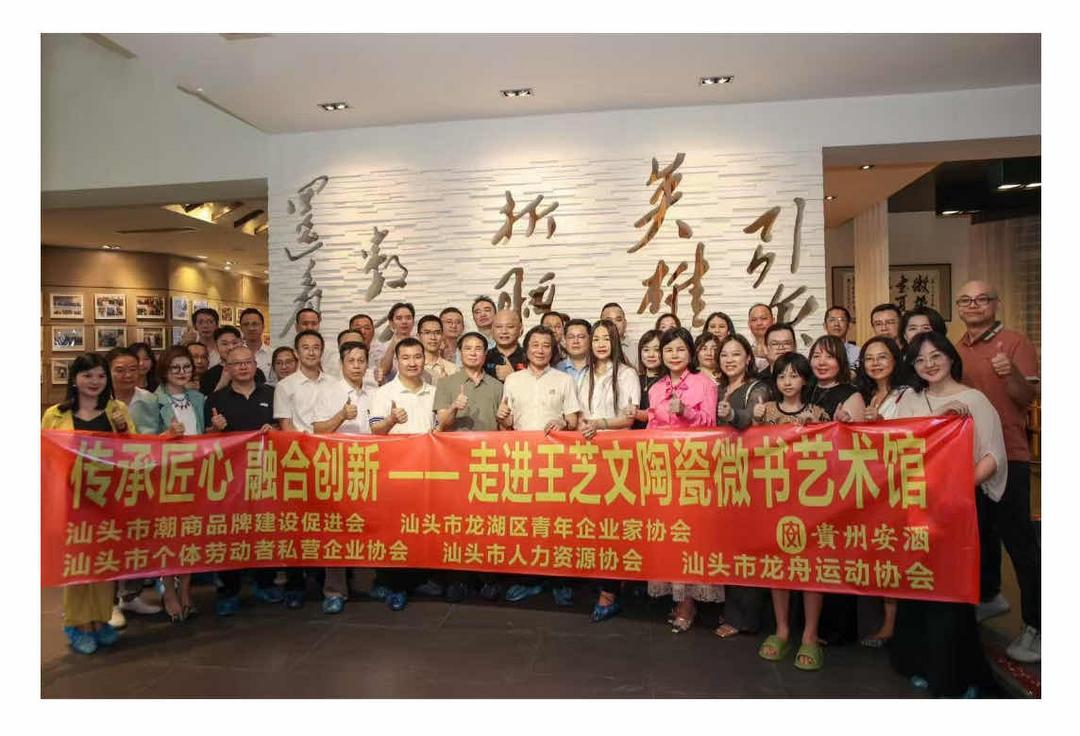 (《大湾区时报》湾新社汕头讯,记者黄典辉,通讯谢莹)7 月 9 日下午,以“传承匠心·融合创新”为主题的交流活动在汕头市龙湖区王芝文大师陶瓷微书艺术馆成功举办。 汕头市个体劳动者私营企业协会与汕头市潮商品牌建设促进会、 汕头市龙湖区青年企业家协会、 汕头市人力资源协会、 汕头市龙舟运动协会等多家单位的会员代表齐聚一堂, 共同探寻陶瓷微书的非遗魅力, 共话传统文化与现代发展的融合路经。