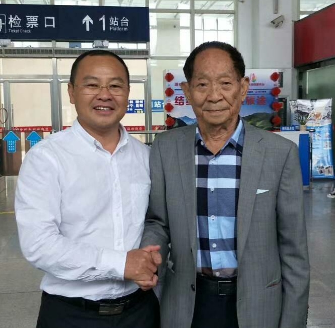 这是2017年10月6日,陆昱会长送别袁隆平院士的留影,袁老当时身体已经欠安,他握着微微发抖的手对陆昱说:“灌阳是一个神奇的地方,我把第一个县级院士工作站设在了灌阳,希望实现禾下乘凉的美梦。”