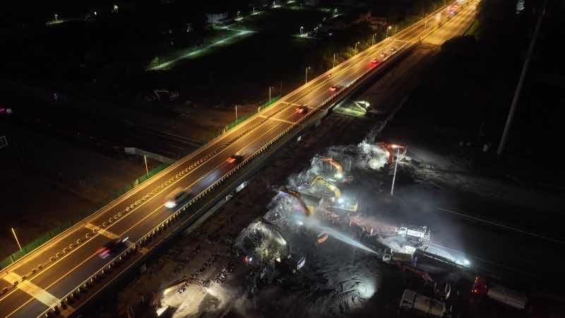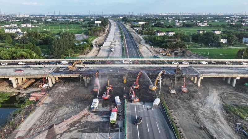 中交建筑沪武TC2标项目双浮公路支线上跨分离式立交桥左幅段顺利拆除