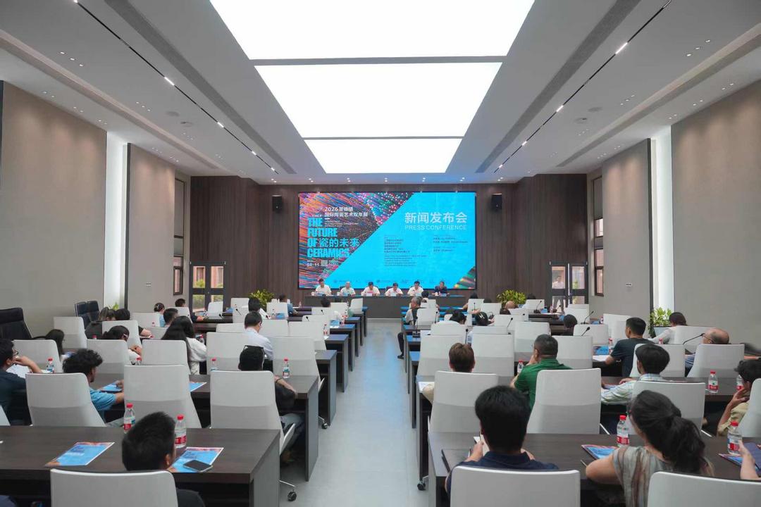 (《大湾区时报》湾新社江西讯)记者郭民军报道:8月11日,“瓷的未来”2026景德镇国际陶瓷艺术双年展新闻发布会在景德镇陶瓷大学举行。江西省文化和旅游厅二级巡视员刘昌兵,中共景德镇市委常委、宣传部部长张龙致辞,国际陶艺学会(IAC)主席Oriol Calvo Vergés线上视频致辞。景德镇陶瓷大学党委副书记、副校长(主持行政工作)、江西省美术家协会主席、“双年展”总策展人吕品昌,中国对外文化集团副总经理郑秀全,“双年展”执行策展人金文伟教授回答记者提问。发布会由景德镇市人民政府党组成员、景德镇国家陶瓷文化传承创新试验区管委会专职副主任高翔主持。