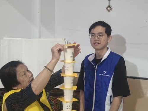 活動在溫馨的氛圍中拉開帷幕。首先,在“紙杯疊疊樂”中,老人們與誌願者默契配合,一層紙杯一層卡紙交替堆疊,在比拚中收獲歡樂。其次,在“乒乓球與雞蛋托”遊戲裏,老人們端坐桌前,專註地將乒乓球投往遠方的雞蛋托,每一次成功入托都引來陣陣喝彩。然後,“擊鼓傳花”環節更添熱鬨,志願者播放歌麯擊鼓,老人們坐一排傳遞道具,歌聲停歇時,手持道具的老人演唱歌麯,贏得大家掌聲歡迎。