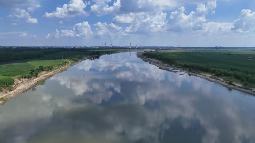 初秋的漢江,宛如一條碧綠的綢帶,在荊楚大地上蜿蜒流淌。江水清澈見底,流速平緩,陽光灑在水面上,泛起粼粼波光。在漢江潛江流域興隆至蔡甸段狗頭灣灘段,一群青魚優雅地遊過,它們的身影在水中劃出優美的弧線,在倒映著藍天白雲的江面上漾開淺淺漣漪。不遠處,數艘工程船正有條不紊地進行著航道整治作業,構成了一幅人與自然和諧共處的生動畫面。