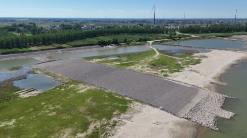除了在時間上精准調度,團隊還對傳統工藝進行了生態化改造。傳統的拋石護岸工藝精度難以保證,石塊入水衝擊能量大,不僅造成材料浪費,更可能破壞魚類棲息環境。