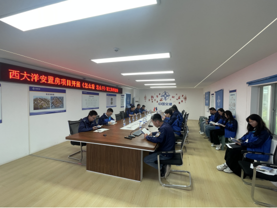近日,中交建筑集团第二工程有限公司西大洋安置房项目组织开展《怎么看 怎么干》职工共学活动。 会上,项目副经理邓稞带头对职工读本内容进行领学,对上级安排部署