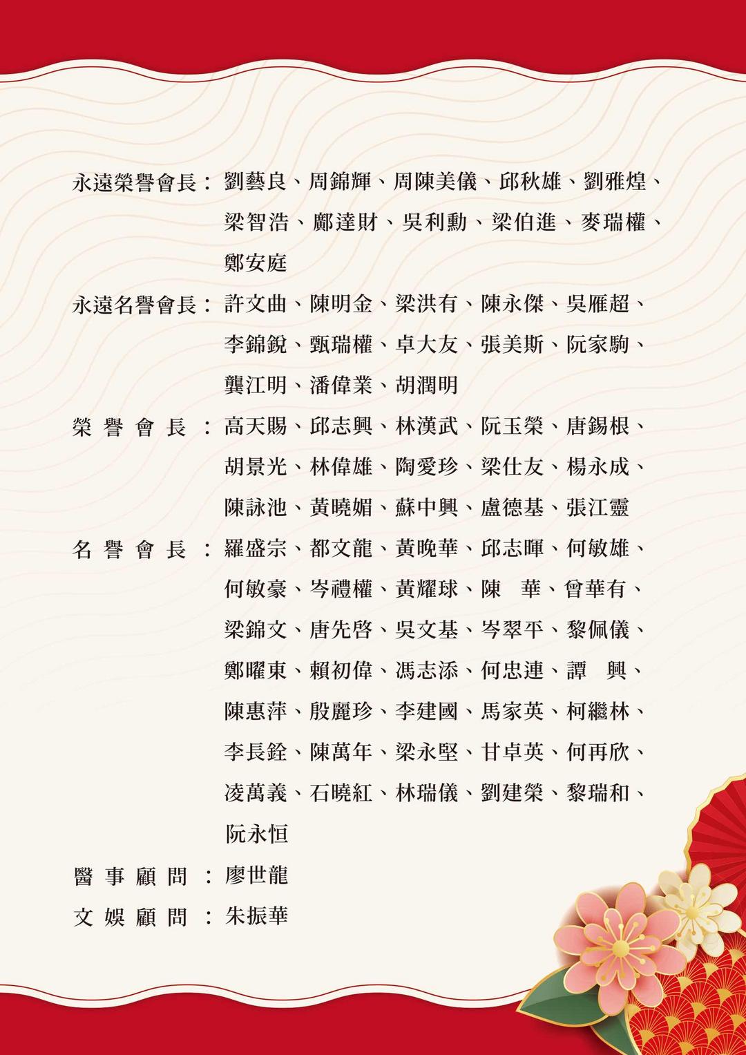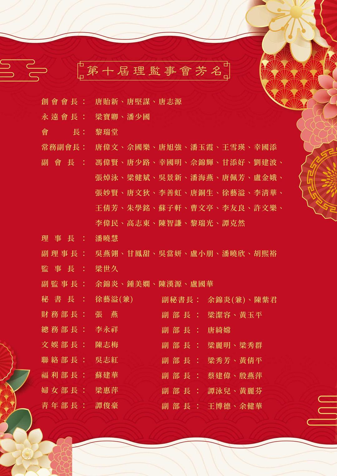 出席嘉賓有:澳門唐家灣同鄉聯誼會會長黎瑞堂、澳門唐家灣同鄉聯誼會永遠會長潘少國、中華人民共和國駐澳門聯絡辦公室社團工作處四級調研員唐行知、珠海市委統戰部副部長鄒煥忠、珠海市僑聯黨組書記、主席張英龍、中華人民共和國駐全國人大代表劉藝良、珠海市政協港澳臺僑與外事委副主任葉文卿、珠海高新區黨工委委員張苹、珠海高新區宣傳文化部四級調研員梁國強、珠海市委統戰部台港澳聯絡工作科科長伍思畑、珠海高新區黨群工作部副部長婁筱筱、香洲區委統戰部副部長、區僑務局局長李英蘭、唐家灣鎮黨委副書記譚超常、唐家灣鎮黨委副書記朱彬、珠海市僑聯黨組成員、辦公室主任豆興、珠海市委統戰部台港澳聯絡工作科二級主任科員馬瑩爽、珠海高新區黨群工作部副部長、團工委書記吳眾、珠海高新區關心下一代工作委員會副主任、本會榮譽會長張江靈、原珠海市政府副秘書長唐成偉、珠海市政協澳區委員、澳門珠海社團聯合總會會長、本會永遠榮譽會長梁智浩、澳門民生聯盟主席劉家裕、澳門立法會議員、本會榮譽會長高天賜、澳門立法會議員謝誓宏、澳門珠海社團聯合總會理事長、本會榮譽會長盧德基、澳門珠海社團聯合總會監事長、本會名譽會長陳萬年、澳門唐家灣同鄕聯誼會永遠名譽會長:李錦銳、吳雁超、梁洪有、阮家駒、張美斯、卓大友、胡潤明、龔江明、香港唐家灣同鄉聯誼會永遠榮譽會長彭文龍、珠海金灣區港澳總商會會長貝慶聯、澳門唐家灣同鄕聯誼會名譽會長、澳門珠海同鄉聯誼會會長陳惠萍、澳門唐家灣同鄕聯誼會名譽會長、澳門三灶同鄉會會長曾華有、澳門唐家灣同鄕聯誼會名譽會長、澳門開放大學校友會會長何忠連、澳門唐家灣同鄕聯誼會名譽會長:黃晚華、黎瑞和、劉建榮、阮永恆、馬家英、澳門唐家灣同鄕聯誼會理事長 潘曉慧、澳門唐家灣同鄕聯誼會監事長梁世久、澳門唐家灣同鄉聯誼會秘書長徐藝溢、澳門唐家灣同鄕聯誼會常務副會長:唐旭強、潘玉霞、佘國樂、唐偉文、幸國添、王雪瑛等。
