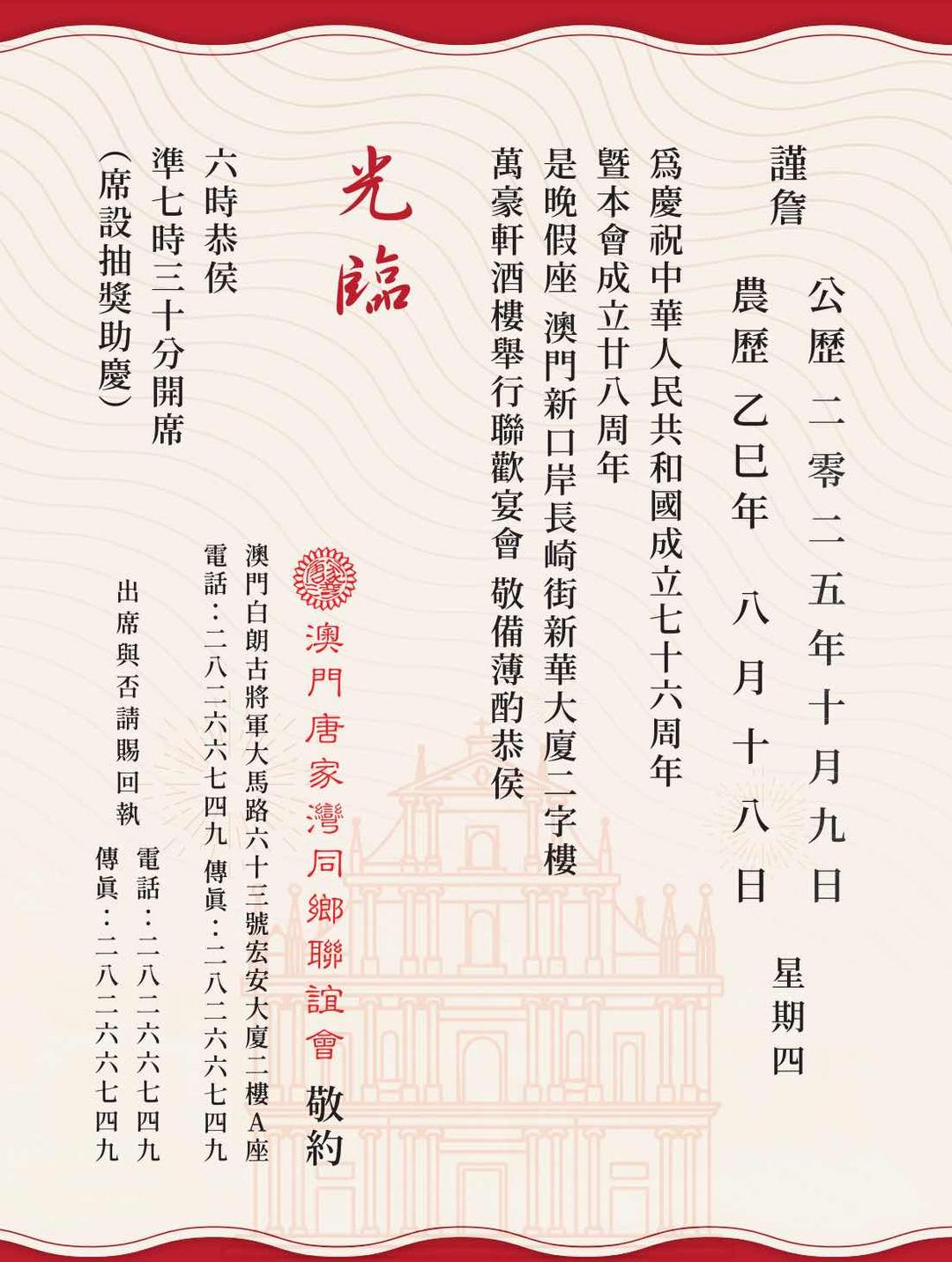 澳門唐家灣同鄉聯誼會舉辦賀國慶暨成立廿八周年會慶