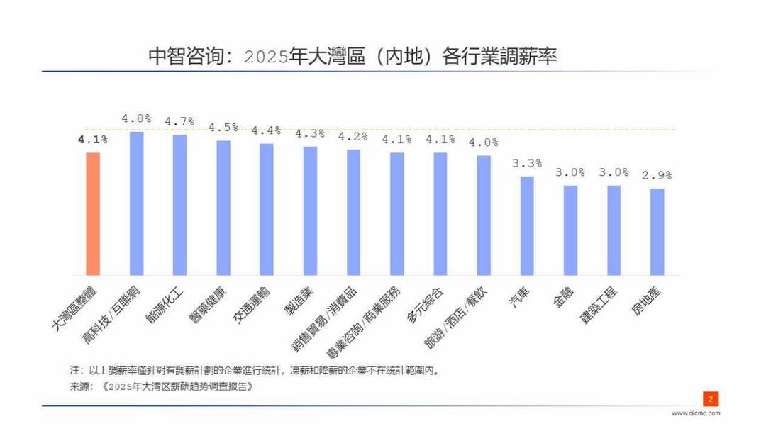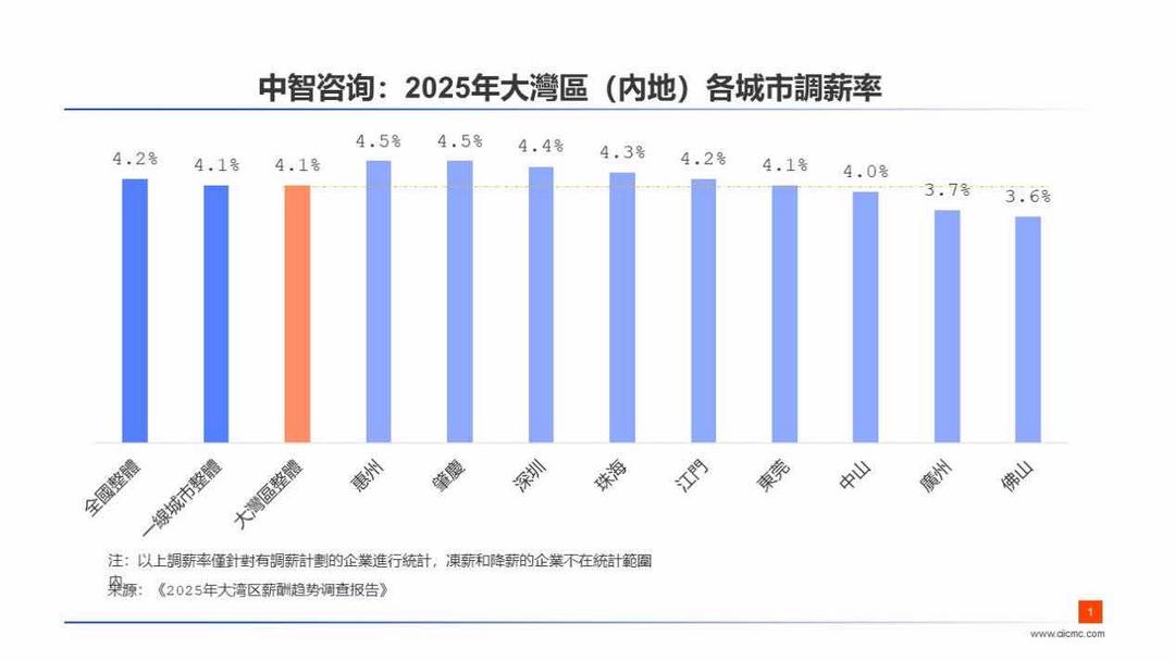1、2025年九个大湾区城市企业调薪率平均为4.1%,较2024年下跌0.7个百分点;
