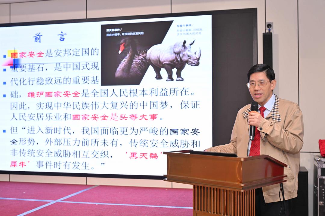 校友會理事長葛萬金致詞時表示,國家安全是重中之重,涉及民生、國防、經濟、科技發展、海洋、航空、太空及深海等各個領域,故此希望藉此座談會能為參加者分享主講嘉賓的經驗及意見,集思廣益,做好公民及澳門人應有的責任。