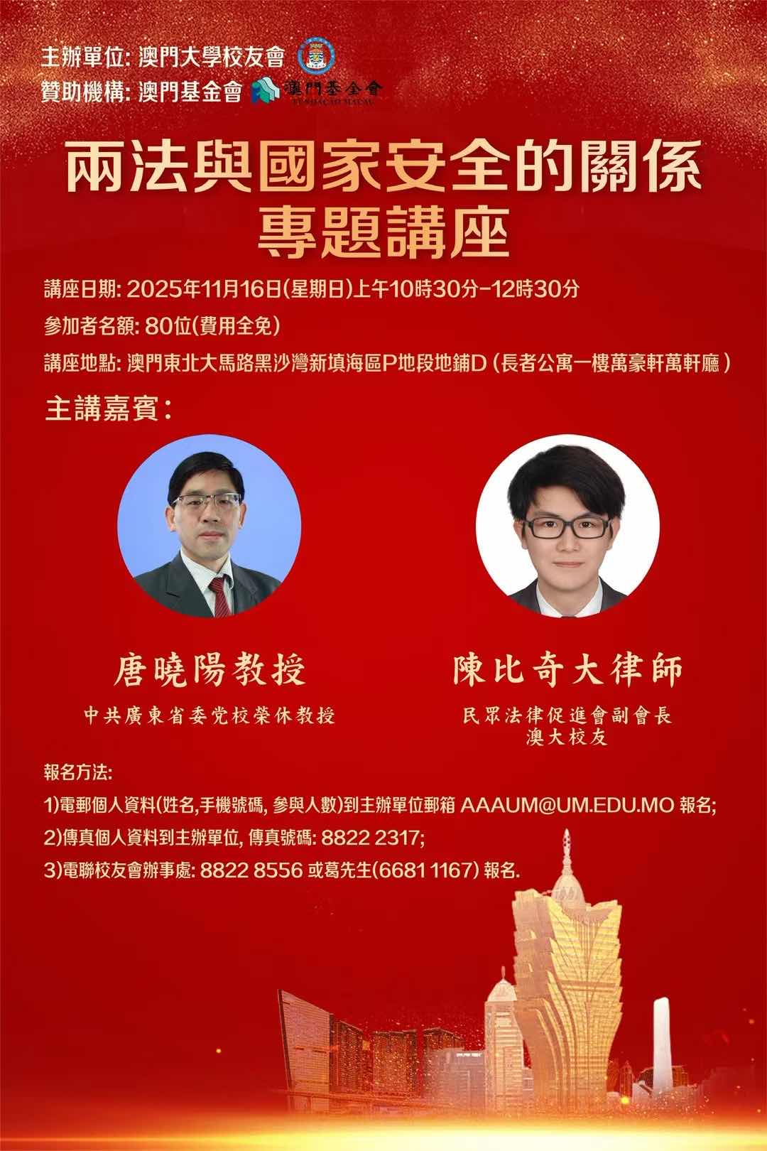 澳門大學校友會舉辦“兩法與國家安全的關係”專題講座