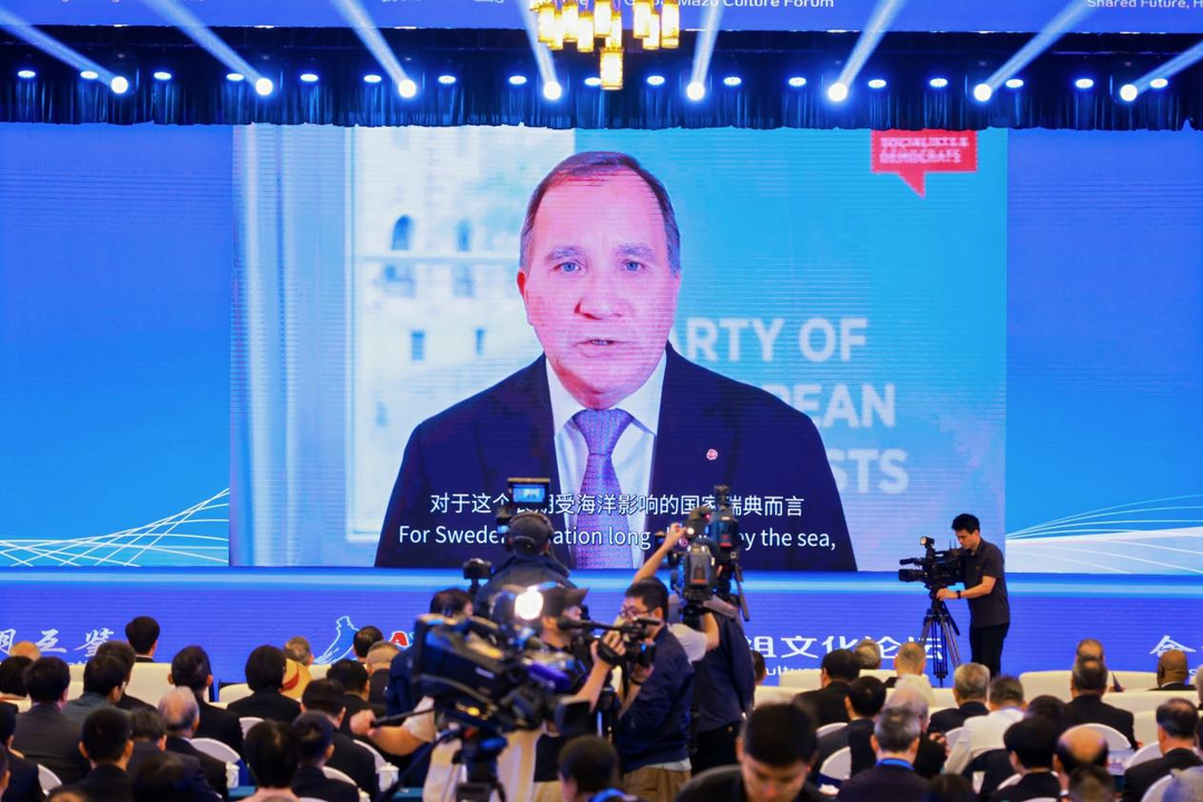 (瑞典前首相斯特凡·勒文发来祝贺视频)