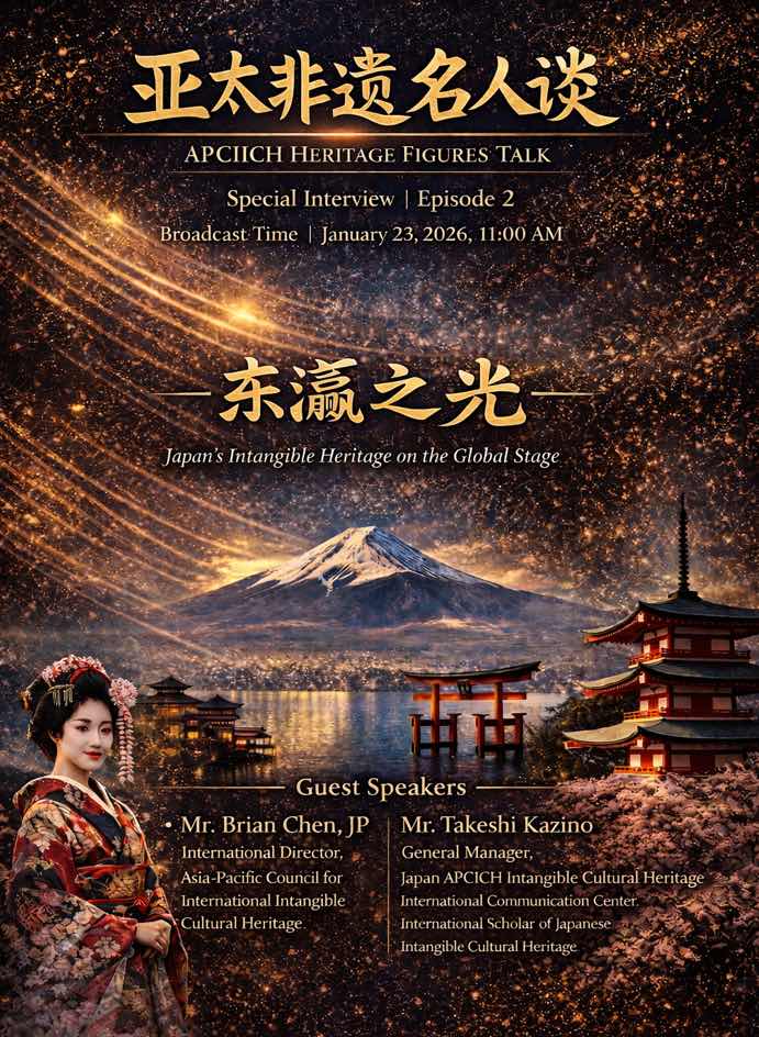 2026年1月23日,由亚太国际非物质文化遗产委员会(APCIICH)主办的国际高端非遗文化访谈栏目《亚太非遗名人谈》第2期正式播出。本期节目以《东瀛之光——日本亚太非