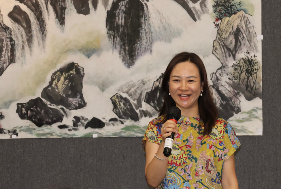 何瑞丽女士在致辞中表达了对各界支持的感谢。她说:“我带着希望与梦想踏上美国这片热土,感受到你们的热情和对艺术的钟爱,激发了我新的创作灵感。我用画笔描绘中国的壮丽山河与美国的山川美景,希望通过色彩与笔墨让大家感受自然的力量与美好。”