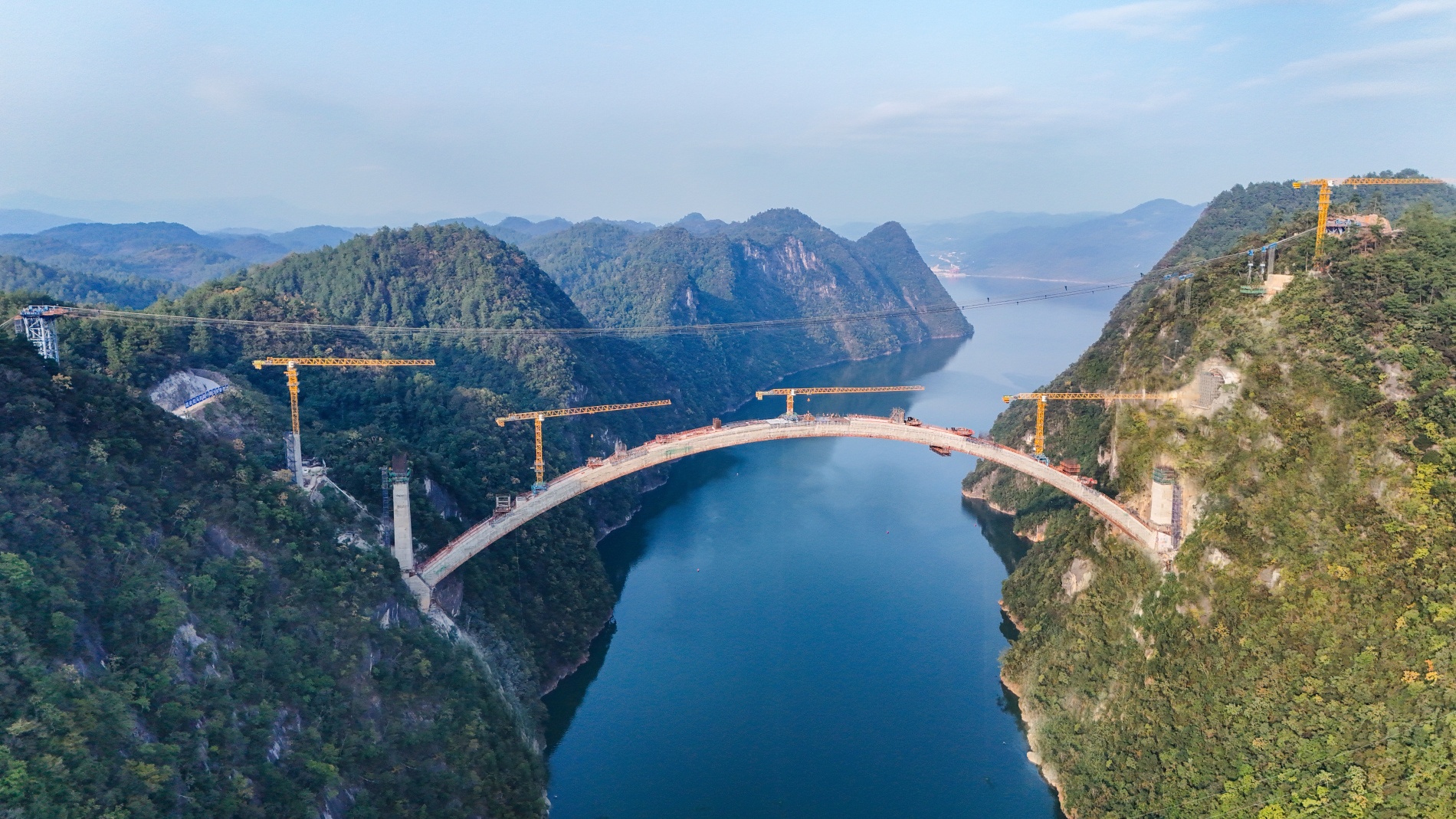 中交路建甕馬鐵路項目烏江特大橋拱圈外包混凝土合龍