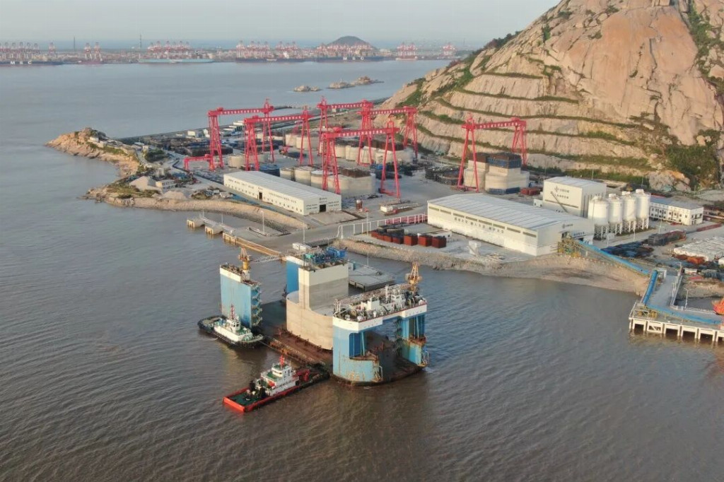 小洋山北作业区西防波堤工程桶式基础结构预制出运工作全部完成