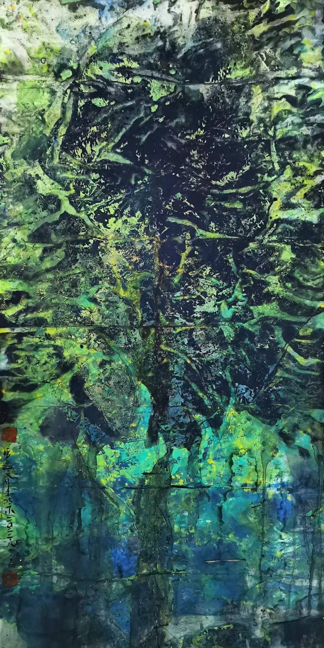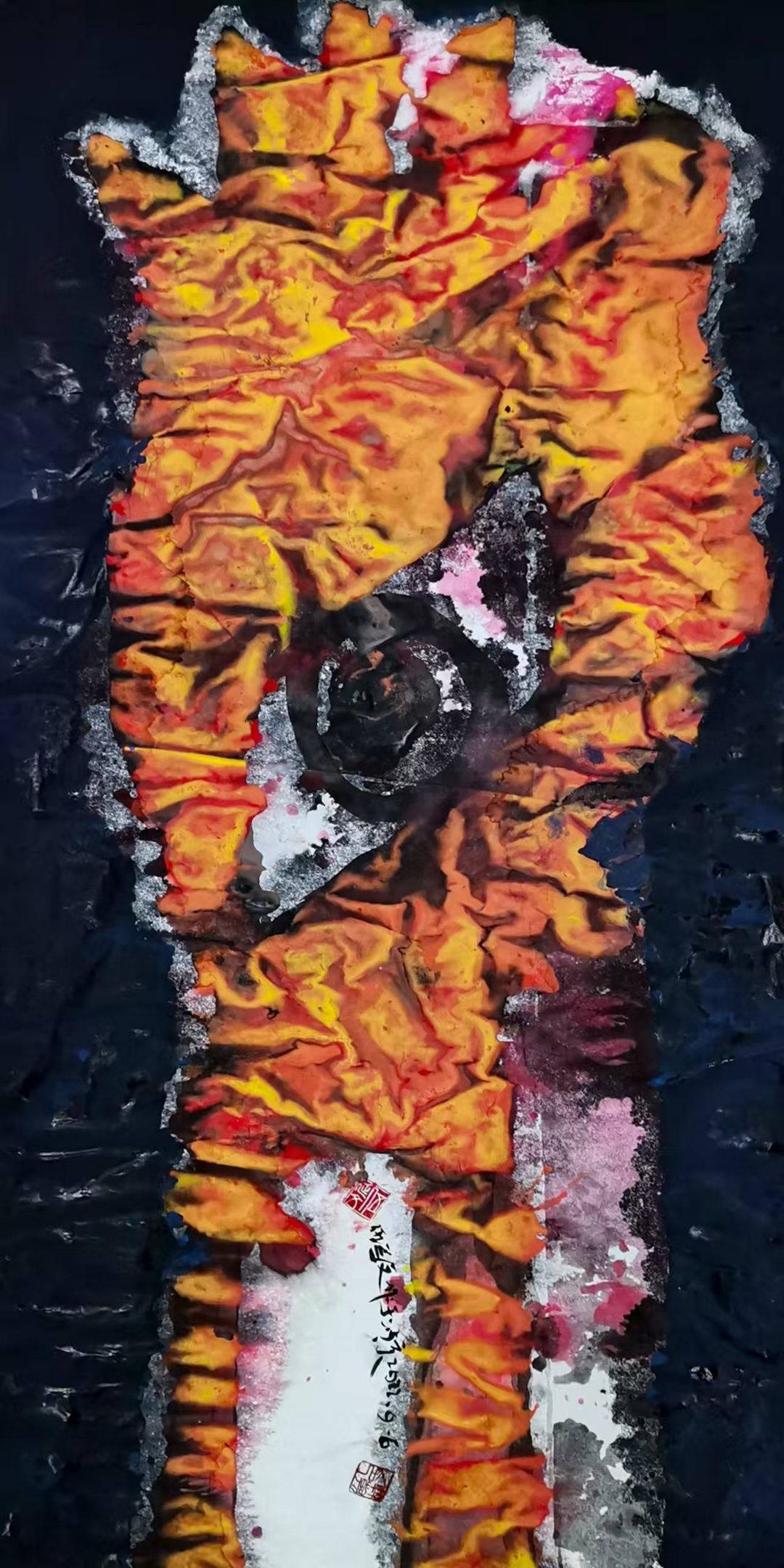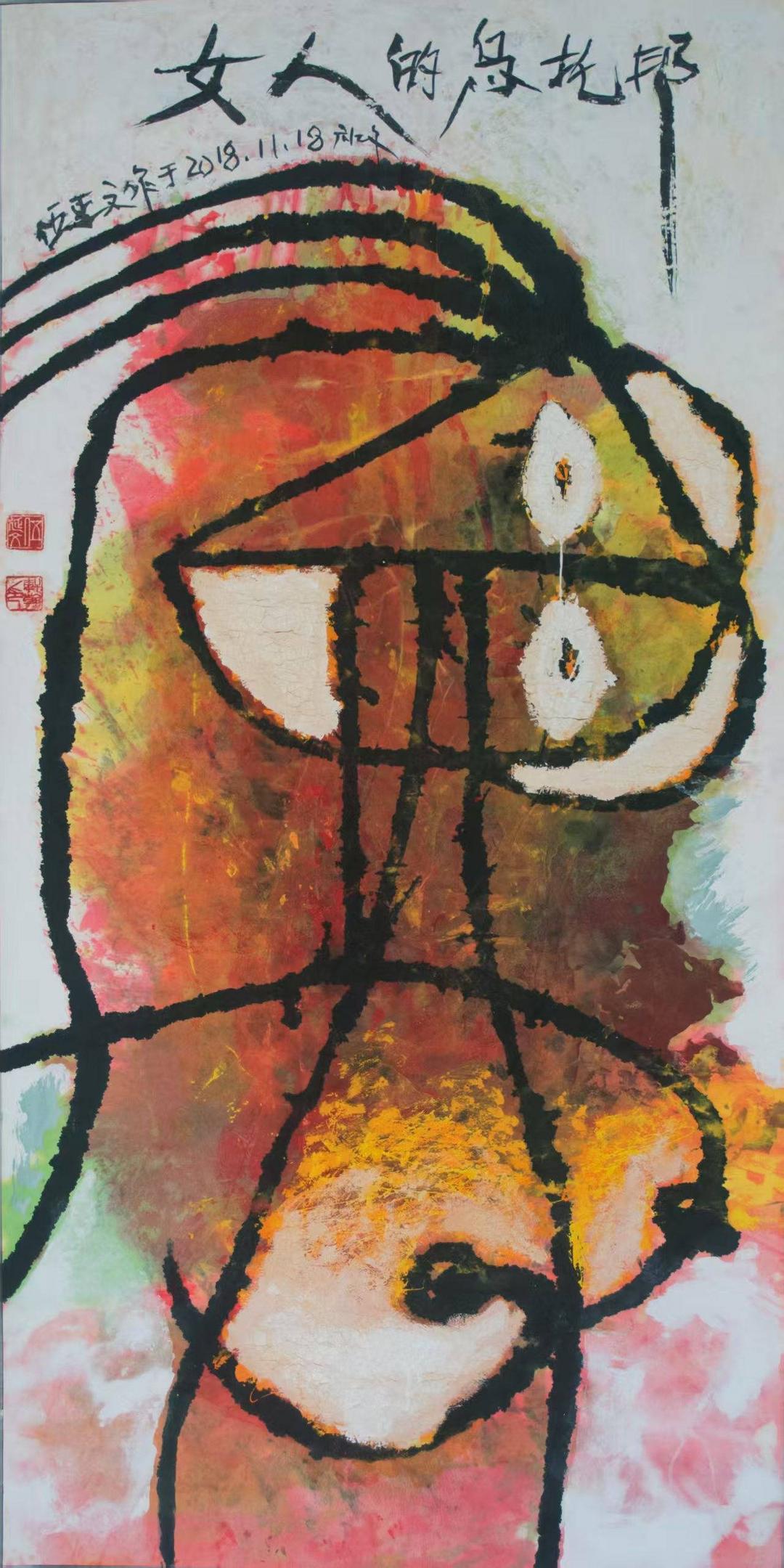 伍延文将湘西图腾的原始野性与西方野兽派色彩结合,形成“狂野如兽、大象无形”的视觉语言,代表作如《双面伊人》《lucky》等。其作品被巴黎文化部、迪拜文化部、东京美术馆等机构收藏。