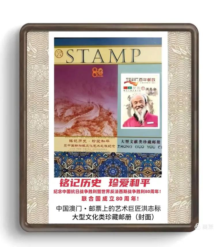 今年(2025)是中国抗日战争胜利暨世界反法西斯战争胜利80周年亦是联合国成立80周年,为铭记历史,维护和平,展现国家军事实力与国防成就,提振民族凝聚力与军队士气,我国又将在北京举行“9.3大阅兵活动”他又创作了大气磅礴、匠心独具的《人民万岁》、《抗日英雄杨靖宇将军》、《赵一曼》《连行健将军》、《金门王一级上将胡琏》和《飒爽英姿》、《时刻准备着 保卫祖国海疆》等有关作品亦入编《铭记历史•珍爱和平 ~中国澳门邮票上的艺术巨匠洪志标大型文化类珍藏邮册》发行。